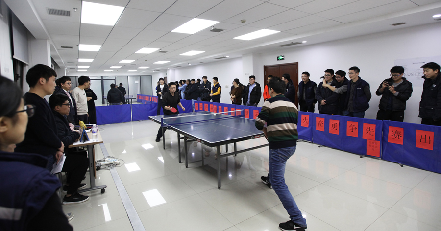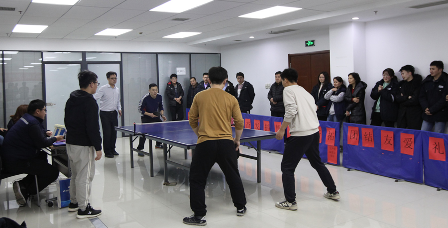 比賽分上下半?yún)^(qū)循環(huán)賽,每隊(duì)采取三局兩勝制,分為男子單打、女子單打、男女混雙、男雙、男單五組進(jìn)行團(tuán)體比賽,每組比賽采取三局兩勝十一分制。乒乓球作為我國國球,有著無可比擬的群眾基礎(chǔ),無論男女老少皆可上臺(tái)“搓幾下”。此次比賽得到了廣大員工的關(guān)注,大家紛紛到場(chǎng)為自己支持的代表隊(duì)吶喊助威。