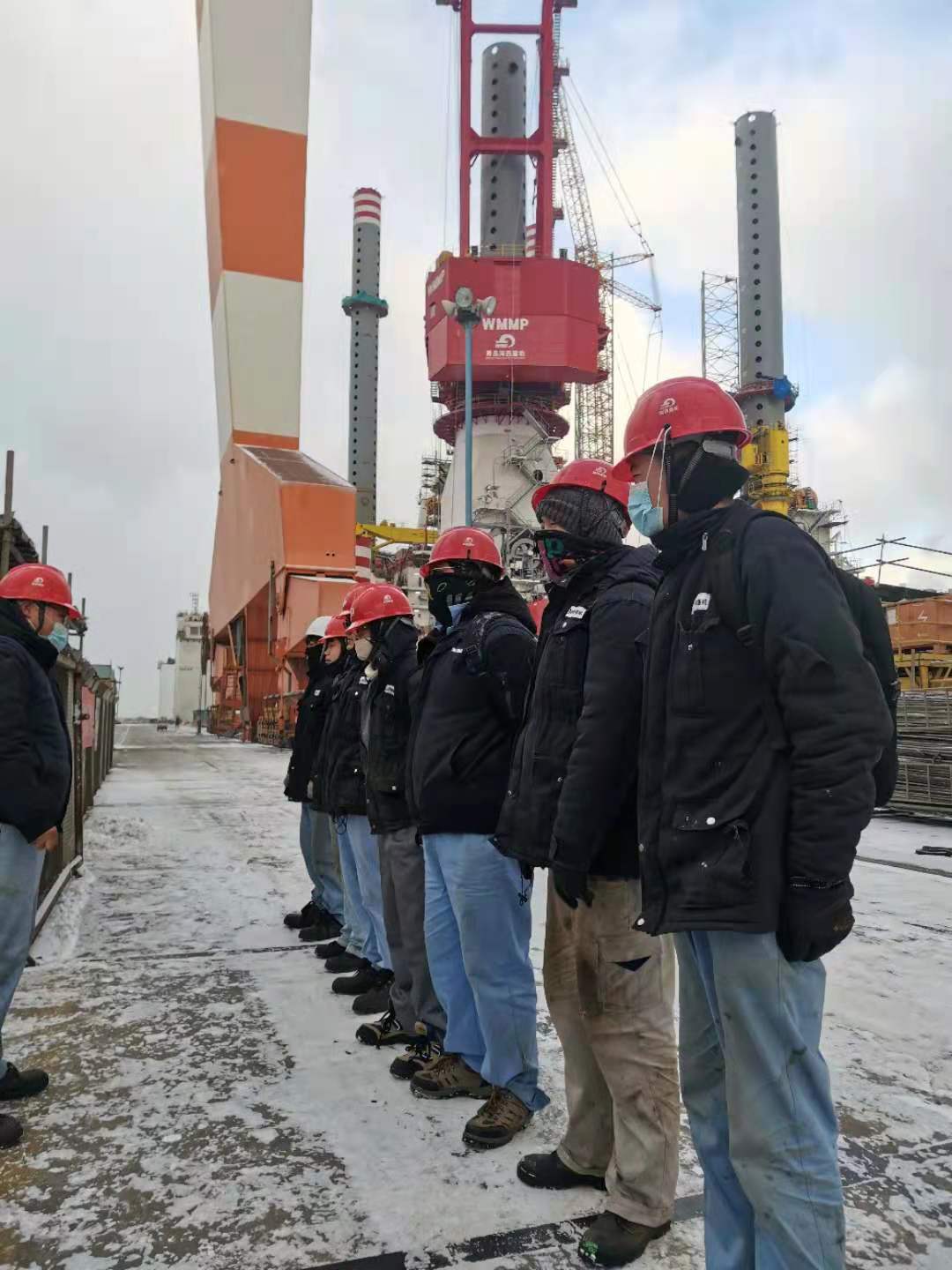 1月7日,山東經(jīng)歷了一次罕見的寒潮,煙臺下起了雪,這是第二場雪,也是我們要克服的又一個惡劣天氣,寒風(fēng)里摻雜著雪,氣溫也是零下好幾度。一如既往的早班會,特意強調(diào)一下安全,然后根據(jù)現(xiàn)場情況,交代好工作,我們就整裝上陣,開始一天工作?,F(xiàn)場的問題在一個一個解決,堅定了我們的信心。我常常鼓勵大家,“咱們再辛苦辛苦,早日結(jié)束?!标犛褌円矔唵位匾痪渑牡脑?,“這都不是事,我們都想早點干完?!?/span>