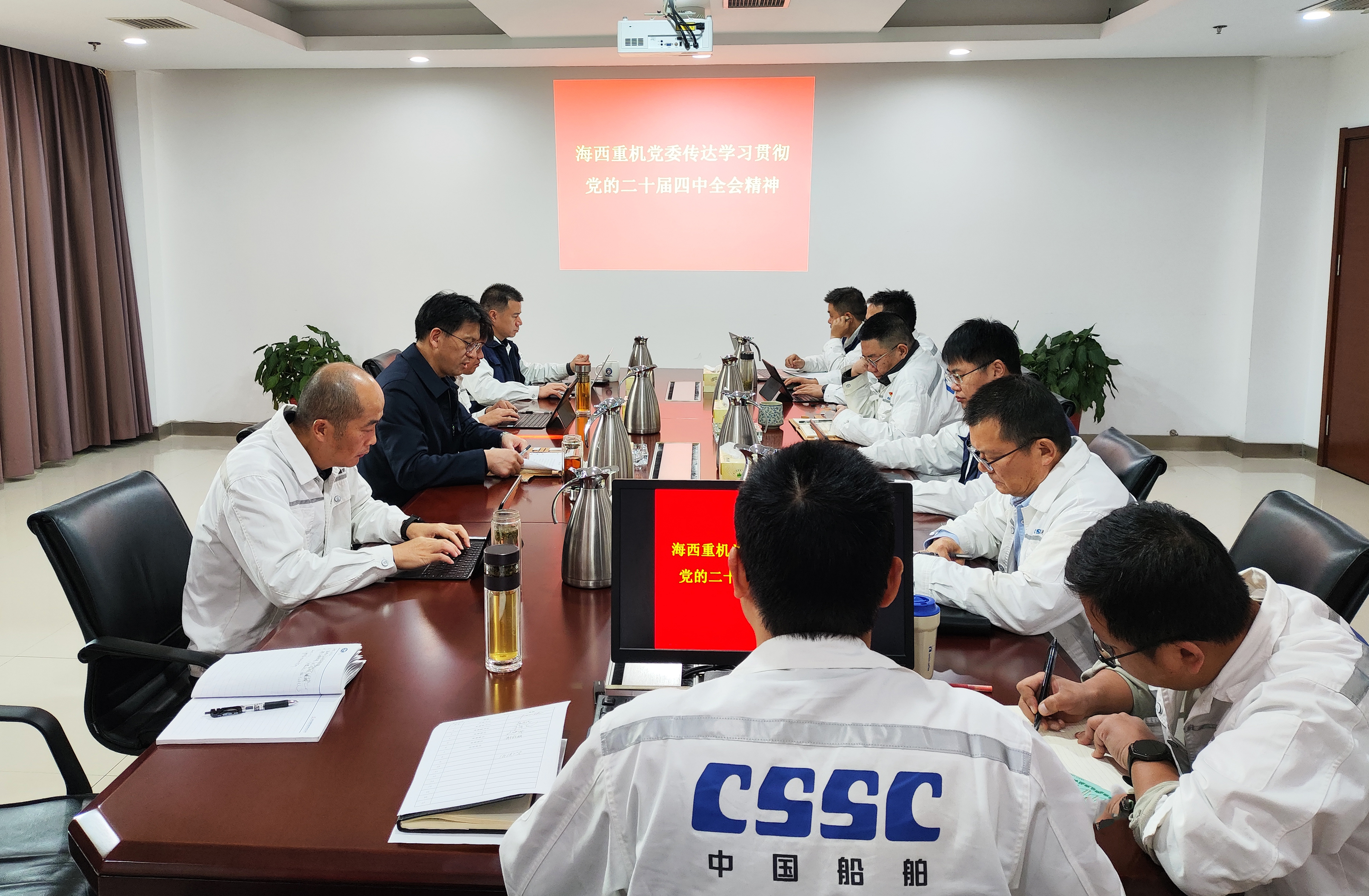 11月1日,海西重機黨委召開黨委(擴大)會議,認真傳達學習習近平總書記在黨的二十屆四中全會上的重要講話精神和全會文件。公司黨委書記、董事長李儒新主持會議。