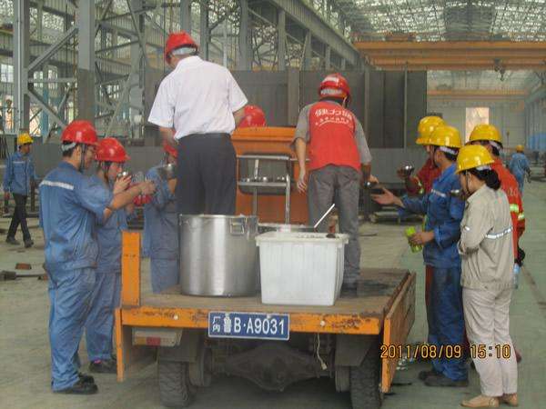 驕陽(yáng)似火,酷暑難耐,8月9日,青島迎來(lái)入伏以來(lái)第一個(gè)高溫天氣。公司領(lǐng)導(dǎo)心系一線職工,為保障職工的身體健康,確保一線職工全身心投入到安全生產(chǎn)工作中。日前,公司組織職工餐廳開(kāi)展 “夏季送清涼活動(dòng)”——每天給職工送綠豆湯作為消暑用品,在炎炎夏日給堅(jiān)守崗位的職工送上了絲絲涼意。并要求食堂多安排如冬瓜、苦瓜等具有清熱解毒功效的食物,確保全廠職工安全過(guò)暑。