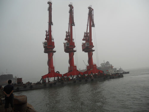 G115于2012年2月3日正式開工,在公司各個部門的努力奮斗下,于8月17日承載著海西的希望揚帆起航發(fā)往連云港,于8月19日靠泊連云港集團東泰公司。在現(xiàn)場工作人員的共同努力下,于8月25日三臺機全部落軌東泰公司碼頭,并于9月7日交予業(yè)主使用。現(xiàn)場的安裝調(diào)試進展迅速,領(lǐng)先于振華公司同期落軌的兩臺門機,三臺門機投入使用至今運行平穩(wěn),深得業(yè)主方面認可。